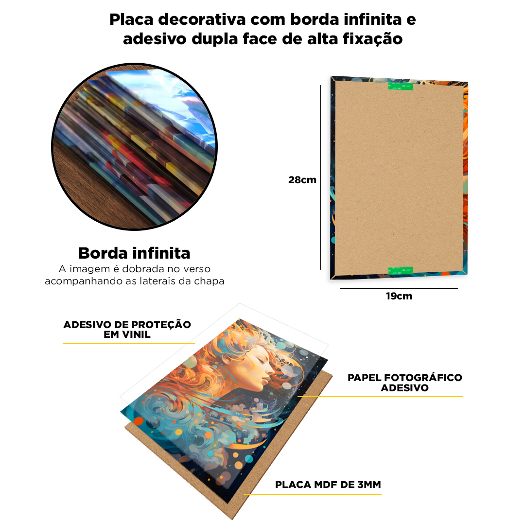 Nossos Quadros e Placas Decorativas são o toque final que faltava para o seu espaço! Produzidos com impressão e papel adesivo profissionais, eles recebem uma película de proteção em vinil que garante alta durabilidade e resistência contra arranhões, desbotamento, água e umidade. É a escolha ideal para quem busca uma decoração moderna com um toque pessoal e autêntico.