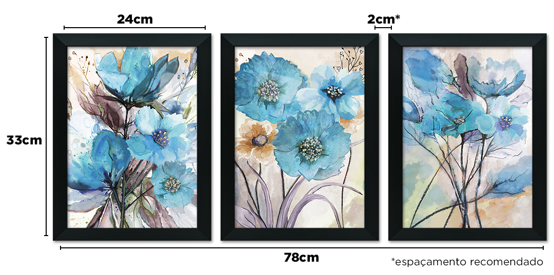 • Tamanho total do kit (sem espaçamento): 30x15cm / 45x21cm / 60x28cm / 72x33cm