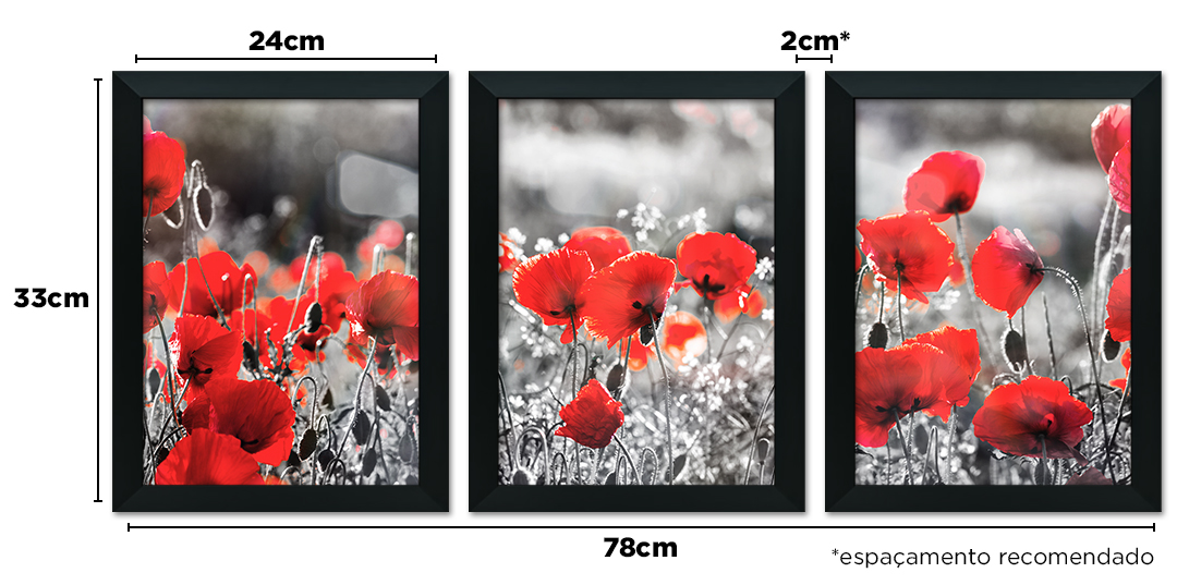 • Tamanho total do kit (sem espaçamento): 30x15cm / 45x21cm / 60x28cm / 72x33cm