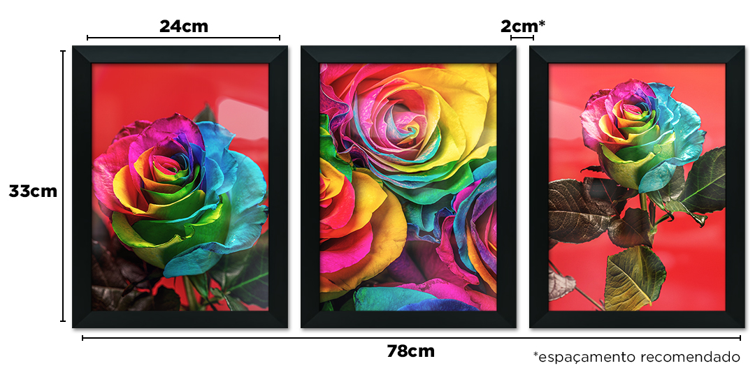 • Tamanho total do kit (sem espaçamento): 30x15cm / 45x21cm / 60x28cm / 72x33cm