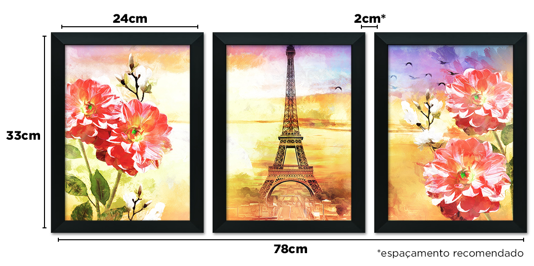 Seu lar ou seu ambiente de trabalho são extensões da sua personalidade. Decorar esses ambientes vai muito além de preencher paredes vazias, é sobre cercar-se daquilo que você acredita, do que você gosta e do que te inspira! Seja para trazer a elegância de Paris à sua sala ou mais inspiração ao seu escritório, este trio é produzido para quem busca uma decoração autêntica, garantindo que o seu gosto pessoal esteja presente em cada detalhe do seu dia a dia. Pela sua beleza atemporal, é também a escolha perfeita para presentear alguém especial, eternizando o charme da Cidade Luz em uma combinação artística única.